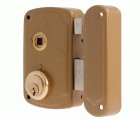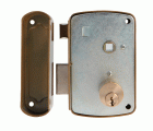 Cerradura de sobreponer para puertas de madera. Cilindro redondo de 50 mm. 3 llaves de serreta. Con palanca de cierre y lengüeta reversible. Nueca de manilla de 8 mm. Llaves en bruto modelo 6410.