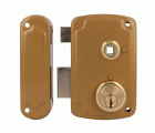 Cerradura de sobreponer para puertas de madera. Cilindro redondo de 50 mm. 3 llaves de serreta. Con palanca de cierre y lengüeta reversible. Nueca de manilla de 8 mm. Llaves en bruto modelo 6410.