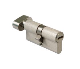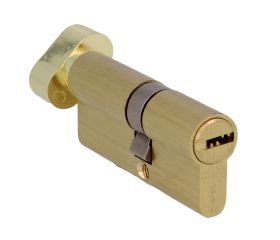 Cilindro de seguridad en latón. 6 pines y leva de 15 mm. Sistema antitaladro. Muelles de acero inoxidable. Incluye tornillo de 60 mm. Incluye 5 llaves de punto de latón. Llave en bruto modelo 5000. Con muletilla.