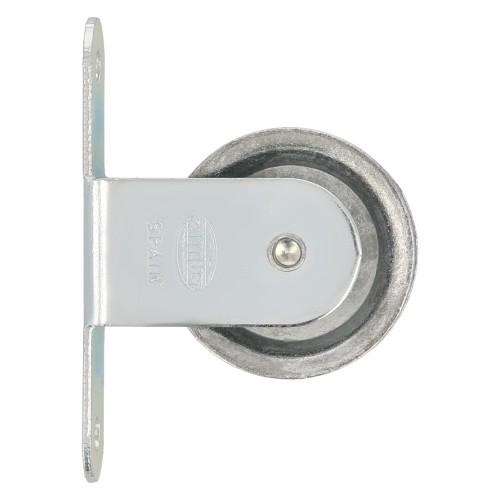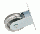 Polea para tendedero con cuerpo fabricado en acero zincado. Roldana metálica de Ø 38 mm con canal de 8 mm. Con soporte de sujección para instalación mediante tirafondos.