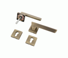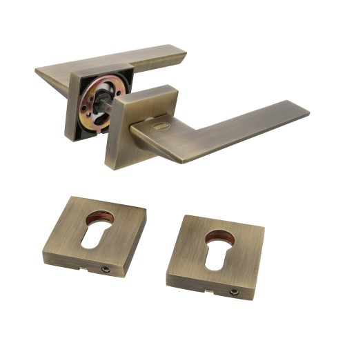 Juego de manillas con roseta cuadrada y bocallaves para cilindro Europerfil. Fabricado en zamak de alta calidad. Incluye llave Allen para su instalación y tornillos pasantes antirrobo.