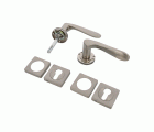 Juego de manillas de diseño en zamak. Con bocallave. Incluye tornillo pasante antirrobo.