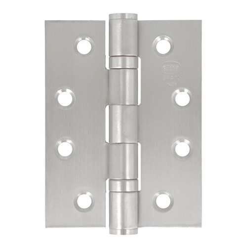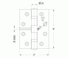 Bisagra fija de acero inoxidable 201. Canto cuadrado, con remate plano. Con rodamientos. Envasado por pares.