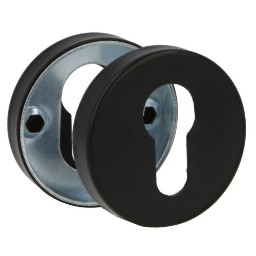 Elaborado con Acero Inoxidable, material duro empleado por su buena resistencia mecánica o a la tracción. Diámetro de 53 mm. Compatible con Cilindro Europerfil. Acabado en negro. Incluye tornillos.