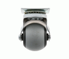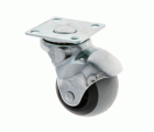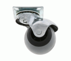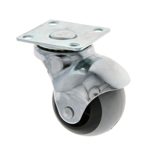 Rueda tipo bola en goma gris y polipropileno negro. Con carcasa niquelada y placa. Buena resistencia a la abrasión y silenciosa. Uso semi-industrial y mobiliario.