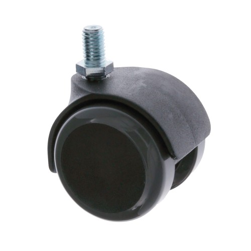 Rueda de nylon negro con banda de poliuretano gris. Con eje roscado. Recomendadas para mobiliario y mueble de oficina. Disponibles tuercas mod. 130-135 para estas ruedas.