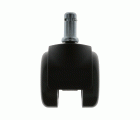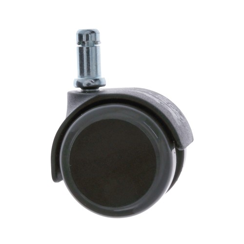 Rueda de nylon negro con banda de poliuretano gris. Con espiga y anilla. Recomendadas para mobiliario y mueble de oficina.