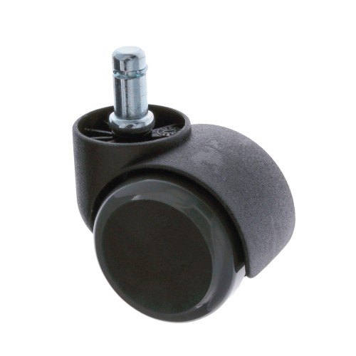 Rueda de nylon negro con banda de poliuretano gris. Con espiga y collar. Recomendadas para mobiliario y mueble de oficina.