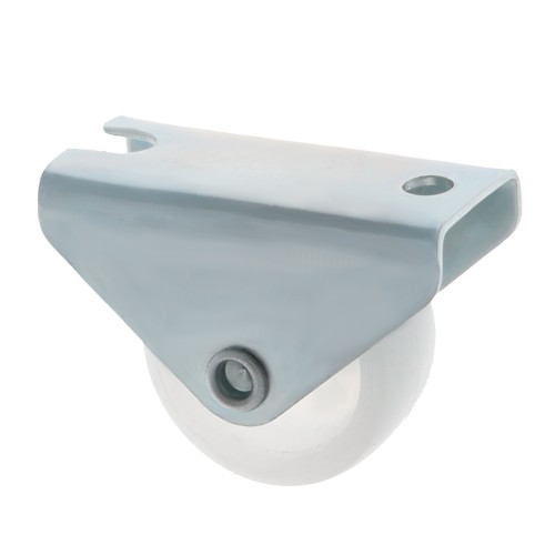 Rueda de nylon blanco. Con soporte fijo de acero zincado. Sistema de fijación con tornillo. Recomendadas para mobiliario y mueble de oficina.