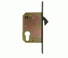 Cerradura de embutir para puertas correderas de madera. Canto cuadrado. Frente y soporte en acero. Alojamiento para cilindro Europerfil con leva de 15 mm. Entrada: 40 mm. Sin cilindro.