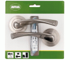 JUEGO DE MANILLAS con ROSETA DE ZAMAK PARA PUERTAS: Juego de manillas de aluminio con roseta en zamak y asa curva ergonómica con diseño sencillo, elegante y moderno. Gracias a la posición de la manivela, se adapta a la mano y no resbala.