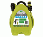 Manguera de patio de PVC. Conector de grifo universal regulable. Pistola de riego de 6 funciones. Soporte para colgar. Asa para transportar.