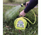 Manguera de patio de 10 metros, que incluye soporte, accesorios y pistola de riego de 6 funciones.