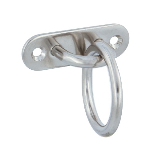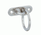 Placa de amarre ovalada con gancho soldado y anilla. Fabricadas con acero inoxidable AISI 316, que aumenta su resistencia frente a la corrosión provocada por las inclemencias meteorológicas. Especialmente diseñada para su instalación en exteriores.