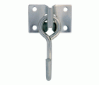 Gancho móvil abierto con placa fija de sujeción. Instalación en techos, paredes o vigas de madera. Para suspender objetos ligeros como cables, cuerdas o hamacas.