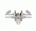 Juego de manillas con picaporte de entrada 60/70 mm incluido. Picaporte de canto redondo. Función Privado, con dispositivo de emergencia en el exterior y condena en el interior: con la condena interior se bloquea el sistema, pero con el dispositivo de emergencia exterior se libera. Para puertas de madera de anchura de 35 a 45 mm.
