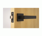 Picaporte de embutir. Frente y soporte en canto cuadrado con film protector. Para manillas con cuadradillo de 8 mm en puertas de madera de paso.