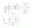 Picaporte de embutir de entrada 45 mm con el frente y el soporte en canto cuadrado. Para manillas con cuadradillo de 8 mm en puertas de madera de paso.