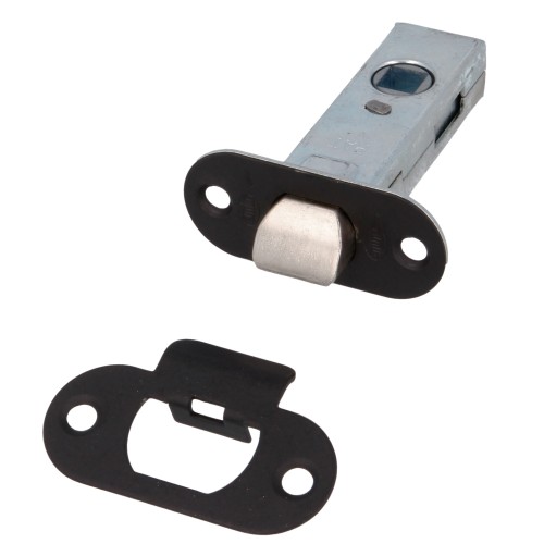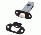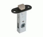 Picaporte de embutir de entrada 45 mm con frente redondo y soporte con cantos redondeados. Para manillas con cuadradillo de 8 mm en puertas de madera de paso.