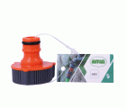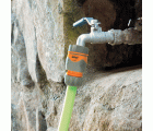 Adaptador con rosca para unión de grifo y manguera. Fabricado en plástico ABS y goma de alta calidad. Resistente a las heladas y a los rayos UVA. Rápida y fácil conexión de mangueras de agua.