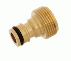 - INFORMACIÓN TÉCNICA DETALLADA: Las medidas del adaptador macho son: 3/4 pulgadas. Además, ha sido elaborado con latón, un material resistente a los cambios habituales del clima, como la lluvia y el calor del verano, y al roce debido a su uso continuado.