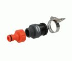 Adaptador de manguera para uso universal. Fabricado en plástico ABS y goma de alta calidad. Tornillo de mariposa, de acero inoxidable. Adecuado para la mayoría de los grifos y fácil de instalar.