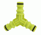 Derivación triple de mangueras. Fabricado en plástico ABS. Para conectores rápidos de las mangueras. Divide un flujo de agua en dos direcciones diferentes.