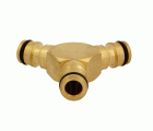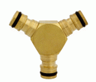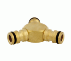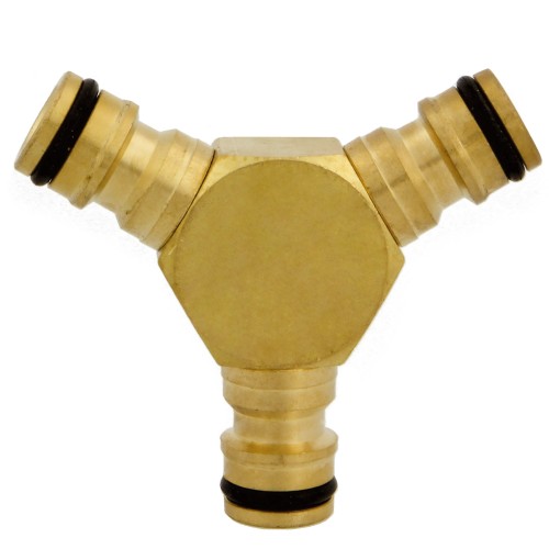 Derivación triple de mangueras. Fabricado en latón de alta calidad. Para conectores rápidos de las mangueras. Divide un flujo de agua en dos direcciones diferentes.