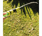 - El cabezal de la lanza de riego permite controlar el flujo de agua para cubrir áreas más grandes o pequeñas. El adaptador reductor de 1/2" a 3/4" facilita la unión con la manguera para aquellos grifos que no tienen una conexión estándar.