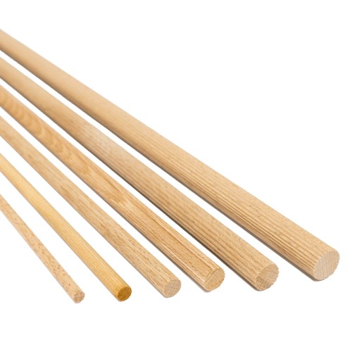Varilla de madera maciza de haya. Acabado acanalado y pulido. Resistente y duradera.