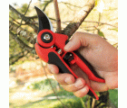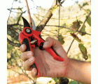 Tijera de podar con mango ergonómico bimaterial. Apertura variable del mango. Hoja recubierta de teflón. Corte suave y limpio. Cierre central de seguridad. Resorte de alta calidad.