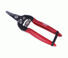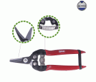 Tijera de podar especial recolección. Hoja curva fabricada en acero de alta calidad. Corte preciso en zonas de difícil acceso. Mango antideslizante de diseño ergonómico. Cierre textil en la parte baja de los mangos. Perfecta para flores, recolección y vendimia.