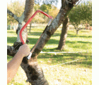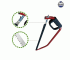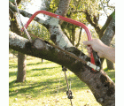 Arco tronzador con hoja de sierra recta. Dientes templados por inducción de alta frecuencia. Dentado universal para corte de madera seca. Indicado para troncos y ramas grandes. Mango ergonómico con protección para los dedos. Fácil recambio de la cuchilla.
