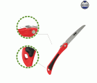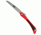Serrucho de poda plegable con mango de ABS. Dentado afilado por tres caras para mayor facilidad y limpieza de corte. Sistema de seguridad para evitar el cierre accidental de la hoja. Mango bimaterial antideslizante.