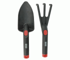 Herramientas de jardín muy ligeras. Incluye una pala de trasplante ancha. Y escarificador de nylon.