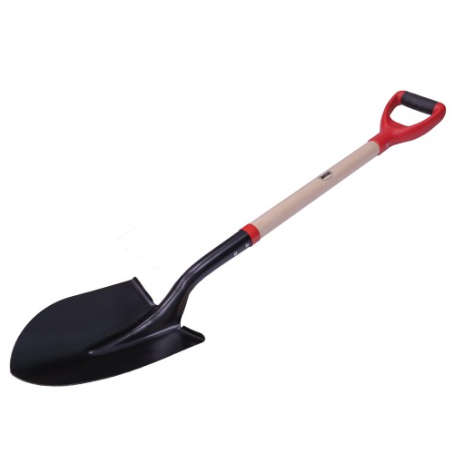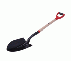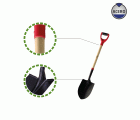 Pala con hoja de acero endurecida. Mango de madera y asa de plástico. Hoja resistente y duradera. Indicada para remover tierras compactas o pedregosas.