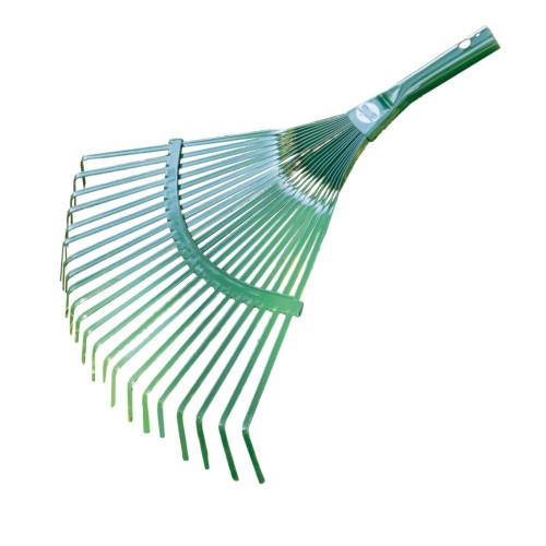 Esta escoba exterior está diseñado para barrer y recoger hojas y rastrojos del jardín o césped sin dañarlo. Sus dientes fuertes y bien espaciados permiten que se pueda trabajar con agilidad y sin dañarlo. Asimismo, su construcción en acero de alta calidad asegura que no se estropeará con el tiempo.