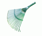 Escoba de jardín, sin mango. 22 púas planas metálicas y lamas fijas. Diámetro del casquillo 30 mm. Para recoger hojas y rastrojos del césped sin dañarlo.