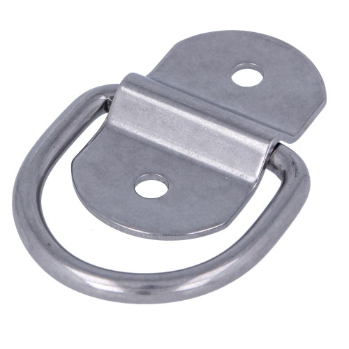 Anilla móvil en D con placa fija de sujeción. Instalación en techos, paredes o vigas de madera. Especialmente diseñada para la instalación de toldos.