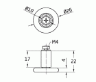 Rodamiento frontal de Ø26 mm. Casquillo separador con arandela y tornillo inox para mampara.