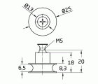 Rodamiento semicircular de Ø25 mm. Cuello largo. Con tornillo avellanado PHILIPS DIN 965 A2-M5X8 para mampara (EXTRUPERFIL).