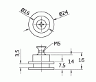 Polea de Ø24 mm. Cuello corto con tornillo avellanado PHILIPS DIN 965 A2-M5X8 para mampara (MADUBAN).