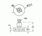 Rodamiento con rótula de Ø26 mm. Con tornillo avellanado PHILIPS DIN 965 A2-M5X8 para mampara.
