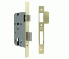 Cerradura de embutir para puertas de madera con palanca de cierre. Frente y soporte en acero en canto cuadrado. Picaporte reversible. Distancia entre nueca de manilla y alojamiento de cilindro Europerfil: 70 mm. Entrada: 50 mm. Nueca para manilla de 8 mm. Sin escudo ni cilindro.