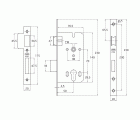 Cerradura de embutir para puertas de madera con paletón de cierre. Canto cuadrado. Frente y soporte en acero. Picaporte reversible. Distancia entre nueca de manilla y alojamiento de cilindro Europerfil: 70 mm. Entrad a: 50 mm. Nueca para manilla de 8 mm. Sin escudo ni cilindro.
