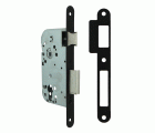 Cerradura de embutir para puertas de madera con paletón de cierre. Canto redondo. Frente y soporte en acero. Picaporte reversible. Distancia entre nueca de manilla y alojamiento de cilindro europerfil: 70 mm. Nueca para manilla de 8 mm. Sin cilindro, incluye bocallave.