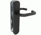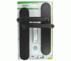 JUEGO DE MANILLAS CON PLACA: Juego de manillas de acero con placa de polipropileno, para puertas de interior o exterior. Con cómoda manivela funcional y ergonómica que se adapta a la mano y no resbala. Se recomienda limpiar con un paño húmedo.