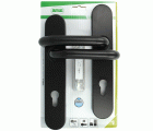 - JUEGO DE MANILLAS CON PLACA: Juego de manillas de acero con placa de polipropileno y bocallave, para puertas de interior o exterior. Con cómoda manivela funcional y ergonómica que se adapta a la mano y no resbala. Se recomienda limpiar con un paño húmedo.
