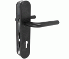 JUEGO DE MANILLAS CON PLACA: Juego de manillas de acero con placa de polipropileno y bocallave, para puertas de interior o exterior. Con cómoda manivela cilindrica que se adapta a la mano y no resbala. Se recomienda limpiar con un paño húmedo.