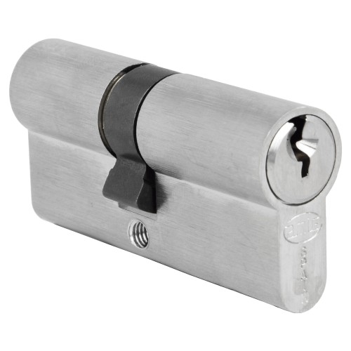 Cilindro económico de cerraduras para carpintería de madera en obra. Cilindro de serreta en latón con 5 pines y leva de 15 mm. Pin antitaladro en el cuerpo. Incluye tornillo de 55 mm. Incluye 3 llaves de latón. Llave en bruto modelo 6460.